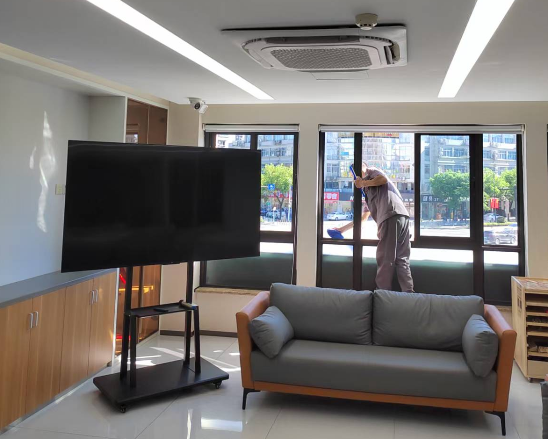 针对公建项目公共空间的品质提升需求,仁本集团突破传统保洁“表面清扫”局限,引入家政服务的精细化标准,开展“类家政”深度清洁。对于会议室、接待室等重要接待空间,除常规清扫外,额外增加沙发缝隙除尘、茶具高温消毒、地毯局部除污、桌面无痕擦拭等清洁流程。这些细节处理让每一位进入空间的人员都能直观感受整洁质感,显著提升公建项目的整体接待形象与使用舒适度。